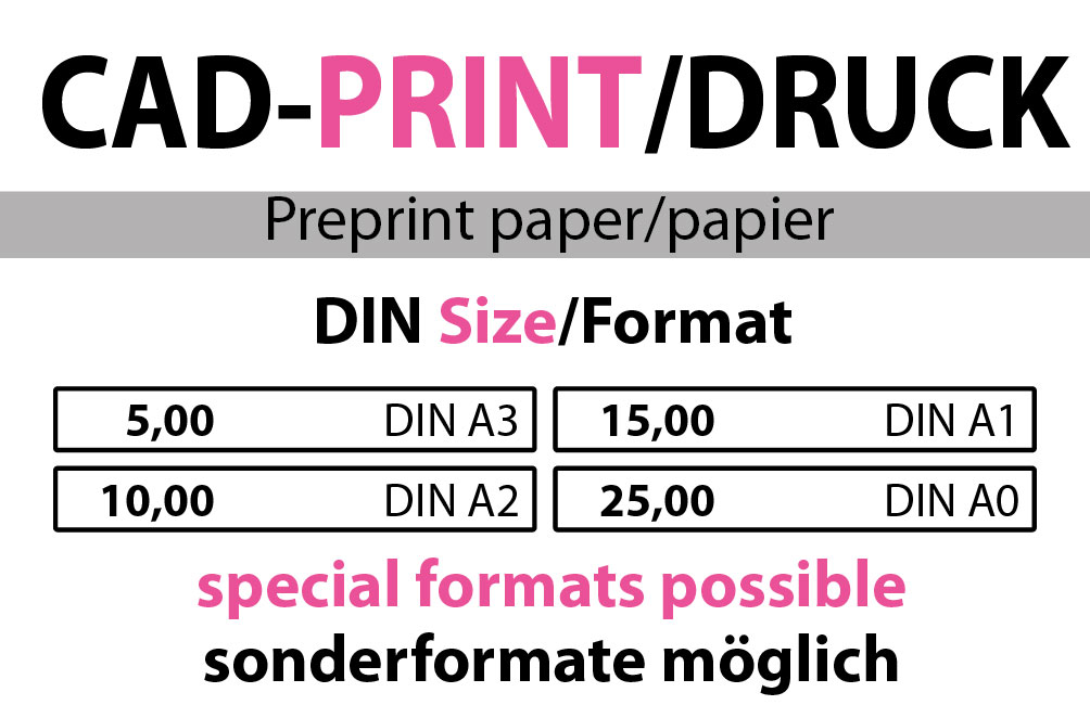 DIN A3 420 x 297 mm / DIN A2 420 x 594 mm / DIN A1 594 x 841 mm / DIN A0 841 x 1189 mm